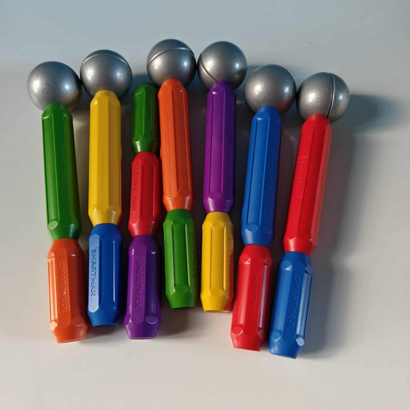 Les formes de grandes tailles en deux parties sont très agréables au toucher et s’aimantent immédiatement aux bâtonnets. Toutes les pièces sont absolument compatibles avec les éléments des autres références SMARTMAX.
